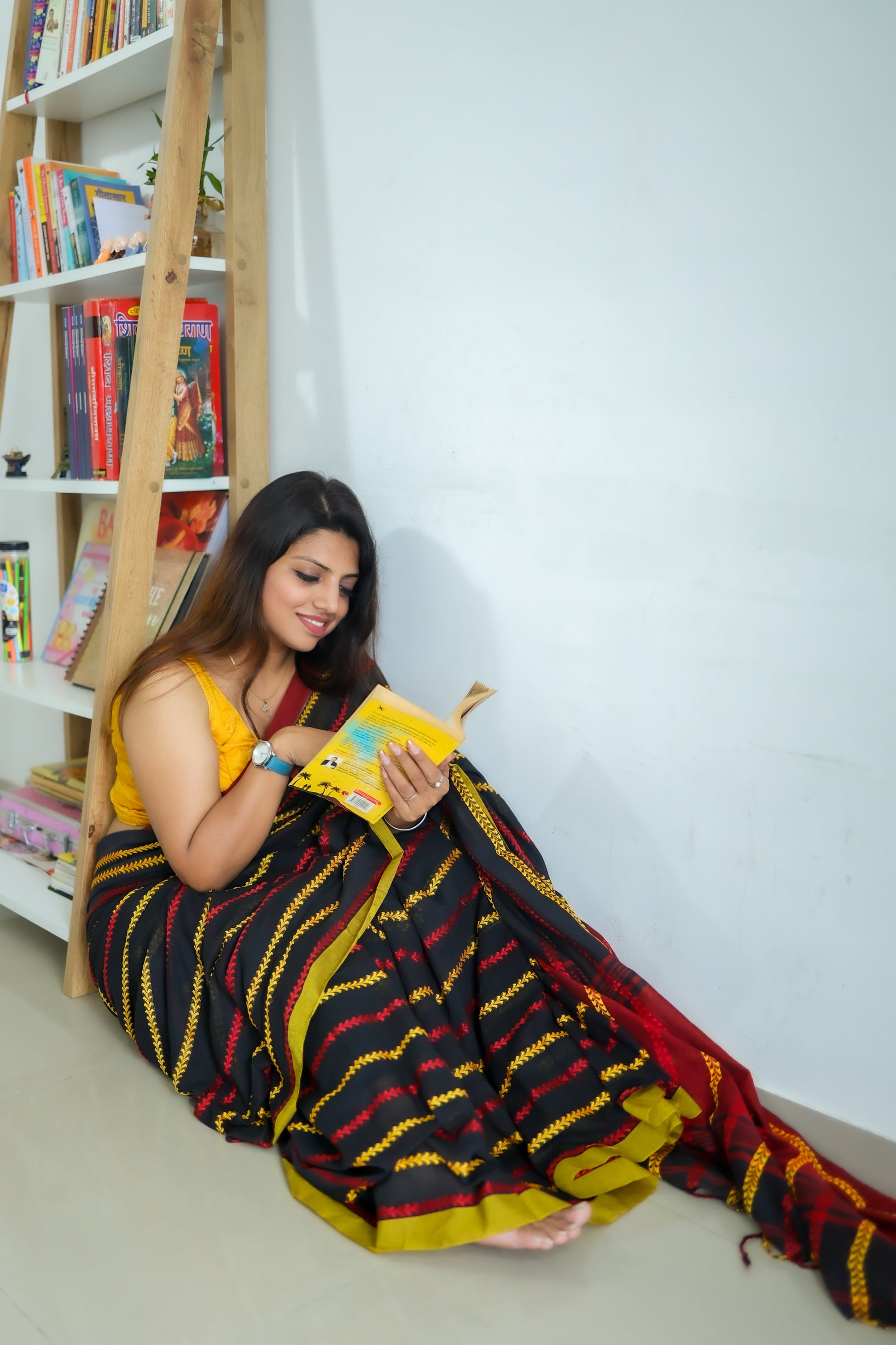 Pair it with a mustard or maroon blouse and oxidized silver jewellery for a stunning ethnic vibe, or switch it up with a sleek black crop top for a fusion look. Perfect for office wear, evening gatherings, or festive moods — this saree delivers timeless flair with bold energy.